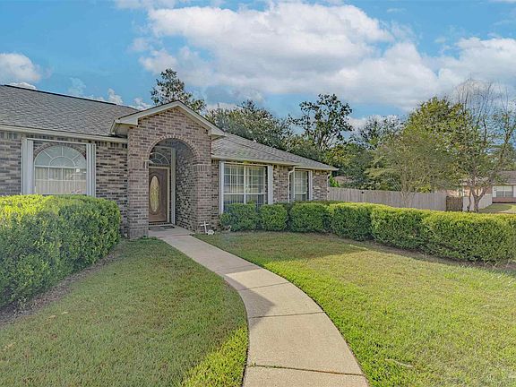 Welcome to your dream home. This beautiful 4 sides brick home is situated on a .47 acre lot. It has 3 spacious bedrooms, 2 bathrooms, a formal dining room and bonus room/office. The corner fireplace is gas. The furnace and water heater are also gas. It also has a 2 car garage and a separate detached covered parking area and widened driveway. The lot is equipped with a 30 amp RV plug for RV parking. It has been recently updated with luxury vinyl plank in all main areas of the home. This beautiful home is located in the quiet Magnolia Lake Subdivision, conveniently located in the heart of Cantonment, with easy access to shopping, hospitals, NFCU, bases and beaches. The new owner can decide if the room to the right of the foyer should be a fourth bedroom, flex room or home office. The large kitchen is a must see. Kitchen space provides for a nice breakfast area. The open floor plan from the foyer provides a smooth flow into the spacious family room where the focal point is a very inviting fireplace. Open and airy, the family room leads you out to the covered lanai. Step through the sliding glass doors and view the spacious backyard. The roof is 2015, HVAC 2025. This is the home you have been waiting for.