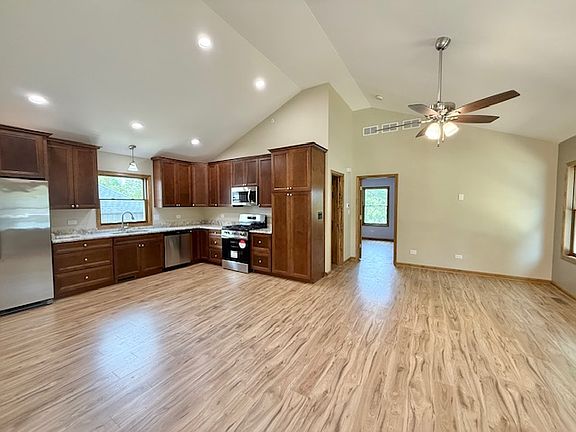 Be the very first to live in this newly rebuilt (2025) 3 bedrooms, 3 bath home on Channel Lake - now ready for occupancy! With a private dock right outside your back door plus a private boat launch just down the block, lake life couldn't be easier. Vaulted ceilings, lots of windows, and open floor plan. The kitchen is a standout, featuring granite counters, SS appliances, soft-close cabinetry, pull-out pantry shelves, and plenty of table space in the eat-in area. Primary suite has attached bath and huge WIC. Rec room, full bath, storage and laundry in huge finished basement. 2 car attached garage with room for 3 more cars on driveway. .26 acre, lawn care included.