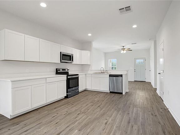 3 bedroom 2 bath home in Riverscape waterfront community. Open floor-plan, stainless steel appliances, primary suite with large walk-in closet, soaking tub, and separate shower. Private community pool and boat launch. Flood Zone X.