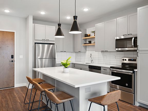 Enjoy luxurious features such as white quartz countertops, stainless steel appliances, large windows and tile backsplash. Entertain your guests in our clubroom, packed with awesome amenities. Walk out onto the rooftop deck and grill with your friends or sit by the fire and enjoy the beautiful view. Your experience at Uptown & Main also includes a pet spa, a fitness center and much more!
