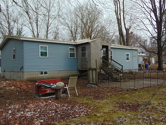 This two bedroom doublewide (40x24 with a 17x13 addition) is on a large 1.29 acre lot along with 4 large sheds providing ample storage. The addition, currently being used as a living room, could easily be converted to a third bedroom. The vinyl siding and 10 year old metal roof offer longevity and require very little maintenance. Recent updates include new 100 AMP electrical service done in 2022, owned water softener is only 1 year old and new central air was installed 5 years ago. Don't hesitate, schedule your private tour today.