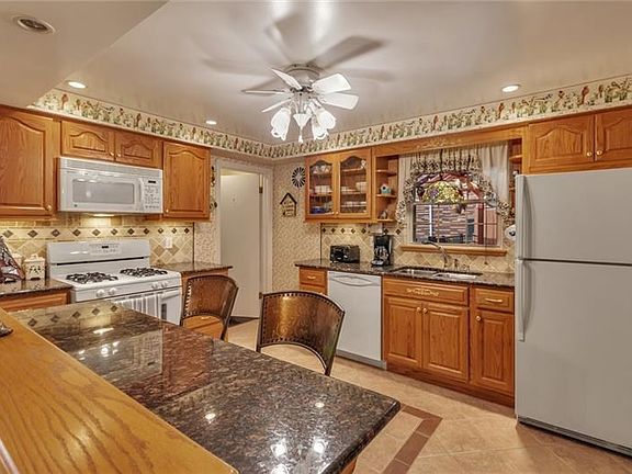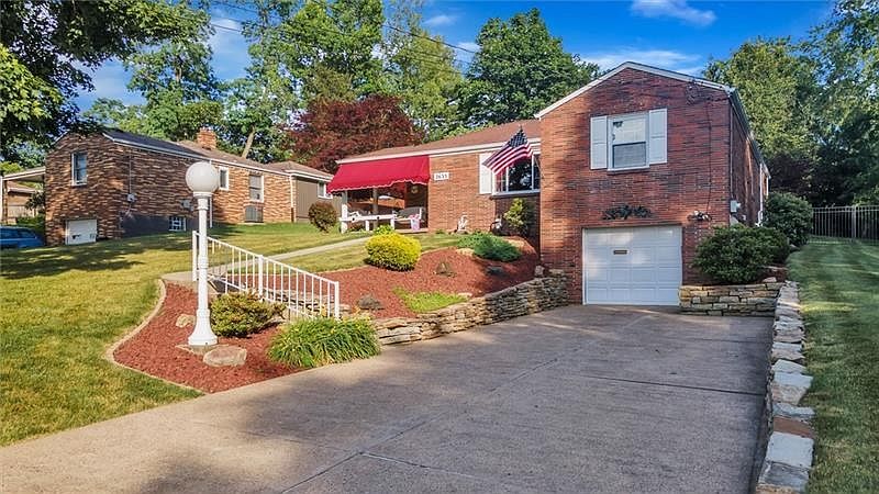 A true show stopper! Come fall in love with this meticulously cared for home and property. The moment you arrive you will notice the lush landscaping and large concrete driveway. The living room features a floor to ceiling stone fireplace and crown molding. Enjoy the granite countertops, plentiful storage and ceramic tile flooring in the kitchen. The huge dining area boasts built in cabinetry, exposed beam ceiling and a work area for a home office. The room opens to the stunning, completely fenced in backyard ideal for activities and pets . Let's not forget the gorgeous waterfall, gas fire pit and patio! The covered side porch is an entertainers dream with room for a hot tub and access to the kitchen. The bedroom sizes are generous with a walk-in closet, main level laundry area and 2 full bathrooms. Downstairs offers a finished game room with wet bar, lots of storage and a large garage with epoxy floor and work station! Close to shopping, dining, Rt.19, Mt.Lebo and more. Walk to the T