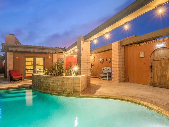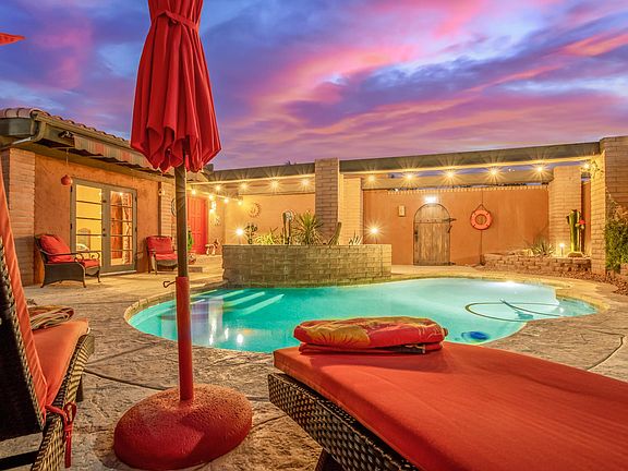 This is a one of kind rental opportunity in an unforgettable home. This semi-furnished (everything but the beds) Spanish southwest style three-bedroom, two bathroom house offers a unique and immersive experience. With its compound design, the gated front courtyard and high stucco walls ensure ultimate privacy. Beyond the bright red front doors you'll enter the stunning colorful living space. This is a happy home. The kitchen was designed by a former restaurateur and features an oversized Viking gas stove, talavera countertops, a skylight, and a giant stainless Thermador refrigerator. Each bedroom has Southwest-inspired decor. The master is the largest with a private bathroom and stone- encased walk-in shower as well as double doors to the yard. The second bedroom has windows overlooking the private atrium. The third bedroom has a dramatic entryway and double-doors that lead to the pool. The patio compound of this home is the true highlight. The gated front area features a pool and multiple areas for relaxation, while the back BBQ area boasts an outdoor sofa sectional, picnic table, BBQ, and huge sun sails. Even the two car garage (with washer and dryer) has a southwest style of its own. Every inch of this house is thoughtfully and artistically created. This home is centrally located and three miles from ASU. Location is minutes from 101 and 60 freeways for easy access to anywhere in the valley. One year lease with one month refundable security deposit required. No smoking. Pets allowed on approval. Additional background, credit, employment, and criminal check will be required of all tenants. Owner provides landscaping and pest control.