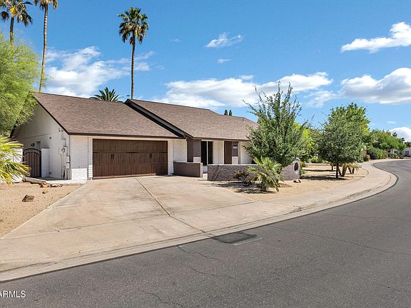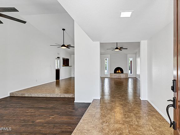 Welcome to your dream oasis located in the heart of Dobson Ranch! Step inside to discover a sanctuary of comfort & style. The spacious main living area exudes warmth with its cozy fireplace & vaulted ceilings, creating the perfect setting for relaxation or entertaining. French doors lead you to a charming Saltillo-lined covered patio, seamlessly extending your living space into the backyard paradise.  The kitchen complete with granite c-tops, SS appliances also has two sets of sliding glass doors allowing a seamless indoor/outdoor experience and views of the lush landscape & pool.  A standout feature is the window-lined bonus room off the primary suite, ideal for a wellness retreat (think sauna, cold plunge, home gym), a light filled home office or a lively pool house. Fresh paint &