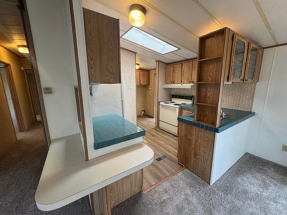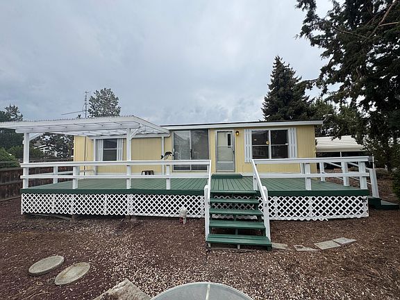 This beauty is privately located in the Green Pastures Senior Co-op Mobile Home Park, which is a serene community reserved for individuals aged 55 & older. This well-maintained home features vaulted ceilings, new carpet & luxury vinyl plank flooring throughout, new exterior paint, a large primary suite with walk-in closet & shower/tub combo, a nice covered front deck, a huge rear deck w/partial coverage that's great for entertaining, outdoor cooking & privacy, & 2 storage sheds are included for all your belongings,. The property includes a carport for sheltered parking along w/several other parking options being located at the end of the street, The community is located in a very desirable area close to all amenities & just blocks to Redmond's dry canyon trail system. Space rent of $385 offers a very affordable living option in this desirable community. Prospective buyers must undergo an approval process before finalizing the purchase, ensuring compliance w/ regulations & guidelines.
