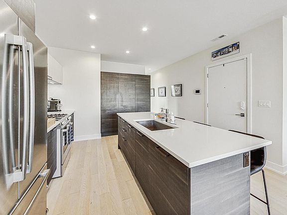 Experience modern luxury in this barely lived-in, 2020-built penthouse located in a full-brick building on the vibrant border of Logan Square and Bucktown. This exceptional 3-bedroom, 2-bath home is defined by its extra-wide, multi-level layout, offering expansive living spaces, abundant natural light, with landscape city views- from unobstructed windows, and premium finishes throughout. The open-concept main level is perfect for entertaining, featuring a large living and dining area with room for remote work or relaxation. The gourmet kitchen boasts 42" imported Archicesto cabinetry, high-end Bosch appliances, quartz countertops, and an oversized island for dining or meal prep. The upper level is home to the serene primary suite, designed with sophistication and comfort in mind. It includes multiple custom-organized closets and a spa-like bath with a double vanity and oversized stone shower. A second bedroom on this level adds versatility, while thoughtful upgrades like a built-in Murphy bed, desk, and custom closet systems enhance functionality. Outdoor living is unparalleled with a private terrace off the main living area and an expansive, elevated roof deck offering breathtaking 360-degree views, including the city skyline. Additional features include wide plank hardwood floors, in-unit laundry, and ample storage throughout. This home comes complete with heated, attached garage parking and extra storage. Located in a prime neighborhood, you're just steps from the best of Logan Square and Bucktown, including top-rated restaurants, nightlife, shopping, parks, and convenient transportation options. A rare find, this penthouse is the perfect blend of style, space, and location!
