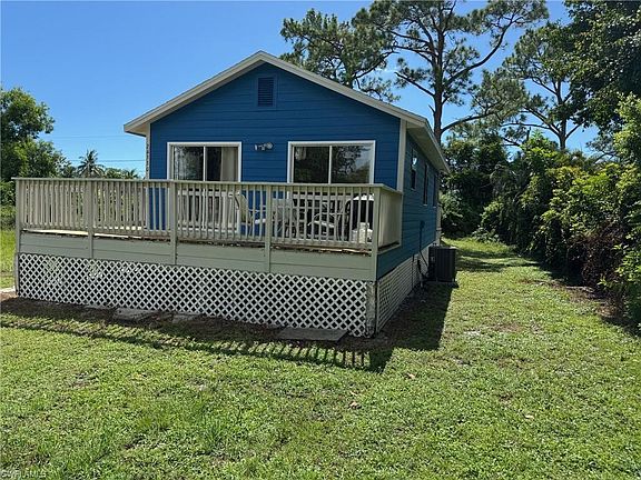Welcome to 26330 Coventry located in central Bonita Springs, just minutes to the historic, redeveloped and vibrant downtown area with boardwalks along the imperial river, restaurants, bars, and shops. This home in NOT in a flood Zone! This quaint cottage features 2 Bedrooms, 1 bath and is surrounded by elevated decks and is at the end of a dead end street, no traffic! In the morning sip your coffee on the front deck watching the sunrise and, in the evening, enjoy the sunset off of your western facing deck overlooking your large back yard. Plenty of room to add on and best of all this propety is zoned TFC2! Just move right in, the interior and exterior freshly painted, new high quality laminate floor throughout. Make this your perfect forever home or as a great short term or long term investment property with no HOA fees and no rental restrictions! Make your move!