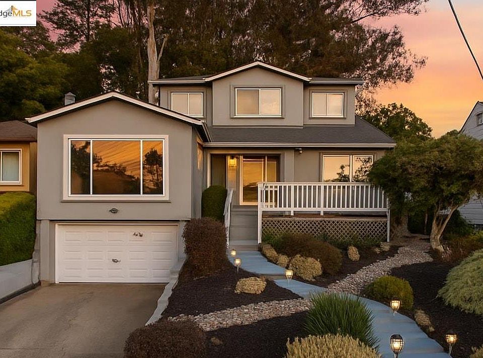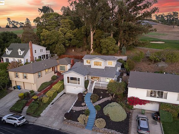 Behold this 3+ bedroom retreat on The Arlington. Perched atop El Cerrito’s hillside and tucked against the manicured fairways of the Berkeley Country Club, this home feels both stately and serene. Inside, sunset views stretch across the living room, dining room, and kitchen. The main level offers two bedrooms, highlighted by an oversized primary suite with walk-in closet and spa-like bath featuring dual sinks and a jacuzzi tub, plus direct access to a private backyard with hot tub. A permitted upstairs addition easily serves as a third bedroom, office, or guest suite, while the lower-level bonus room invites movie nights, workouts, or a quiet space to work from home—a flexible floor plan that adapts to every need. Beautiful hardwood floors, new carpeting, and thoughtful updates shine throughout. The ground level includes an extra-large two-car garage with workshop space, utility room, laundry, wine cellar, and abundant storage. With a new roof, seismic strengthening, and modernized systems and appliances already in place, this hillside classic is polished, private, and ready for what’s next.