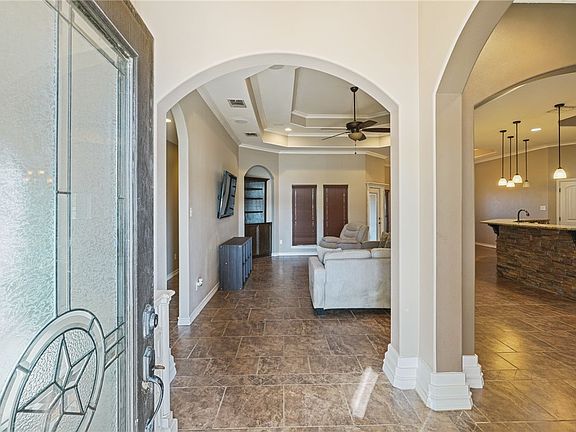 Spacious 4-bedroom, 2.5-bath home situated on a quiet cul-de-sac. All-tile flooring throughout for low-maintenance living. The open kitchen offers an island, gas range, & ample counter space, flowing into a large living & dining area. A bonus second living/dining room provides additional flexibility for entertaining or everyday use. The primary suite features a tile shower, jetted tub, & walk-in closet with dresser & shelving. Each bedroom includes a walk-in closet with built-ins for organized storage. A covered patio overlooks the backyard, providing a comfortable space for outdoor living.