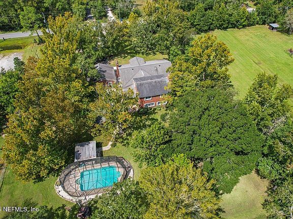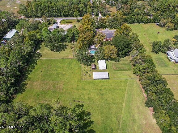 Design your legacy retreat on over 9 acres in St. Johns County, where Open Rural (OR) zoning allows for equestrian facilities, barns, guest cottages, gardens, or additional residences, giving you the freedom to shape the property to your vision. The large brick home serves as the starting point for your dream estate, set back among mature trees with a pool, detached garage, and pump house already in place. Inside, spacious living areas, fireplaces, an office with built-ins, and architectural details like a stained glass window provide a strong foundation for updates and personal touches. With ample acreage, privacy, and room to expand, this rare offering allows you to create a private retreat or family compound just minutes from Historic St. Augustine and Jacksonville, blending country living with convenient access to city amenities.