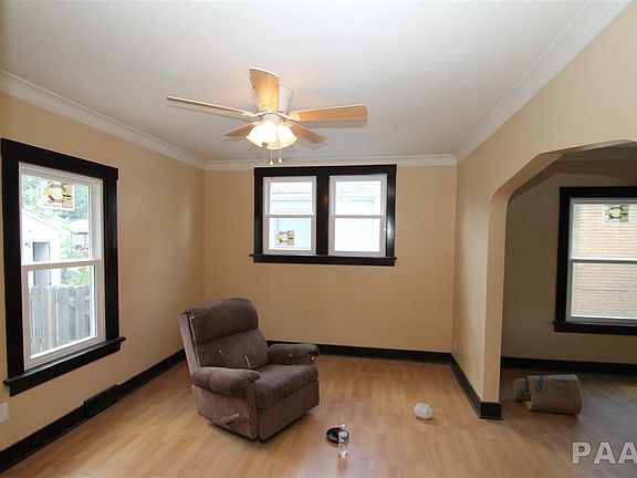 Abundance of updates in this charming home located just north of Glen Oak Park, Peoria Zoo & Luthy Botanical Gardens. Recent improvements includes shingles, windows, 100 amp electrical panel, paint plus Rheem furnace & central air. Remodeled kitchen and bathroom include tile floors. 2 generous sized bedrooms with hardwood floors. Basement remodel started with egress windows, lights & drywall. Oversized 2 stall garage off alley. (Older 10x19 garage should be torn down.) Available for immediate possession. Qualifies for Building Blocks $10,000 grant. Home to be sold as-is.