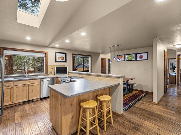 Perfectly nestled into Bend's sought after Valhalla Heights neighborhood.  This 3 bedroom 2 bath home has brand new windows throughout, as well as newer HVAC system and brand new A/C (installed last month)!  With a bedroom and bathroom on the main floor allowing flexibility for its use, it also gives way for 2 larger, vaulted bedrooms upstairs (one as the primary en suite) which are separated by a cozy, peaceful sitting/library room.  Enjoy your fall morning coffee next to the warm, updated gas fireplace in the open living room, as well as a spacious dining area for all of your entertaining needs.  Not to be missed, and definitely the gem of the outside, is the expansive back yard with garden setting and custom garden beds along with custom made, high quality benches to enjoy the outdoor serenity. Additionally there is a wonderful covered back deck that you can bbq all year round! The cherry on top is all appliances are included! CONTINGENT OFFERS CONSIDERED