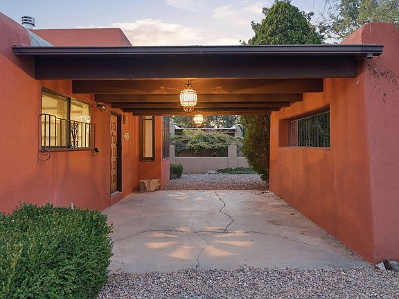 Welcome to this charming territorial-style home in the heart of the North Valley, perfectly situated near Old Town, Downtown, hiking and biking trails and the Rio Grande. The single story 1,883 sq ft layout offers 3 bedrooms, 2 baths, 2 living areas and a versatile bonus room perfect for work or play. Interior highlights include tongue-and-groove and beam ceilings, 2 wood-burning fireplaces, built-in bookcases and laminate flooring. The kitchen comes equipped with a gas stove/oven, microwave, dishwasher and refrigerator. Recent updates include TPO/bitumen roofing, stucco, combo unit, windows, light fixtures, ceiling fans, and fresh interior paint. Outdoors features mature trees, gravel landscaping, and a carport. Enjoy quiet, comfortable living in this established neighborhood.