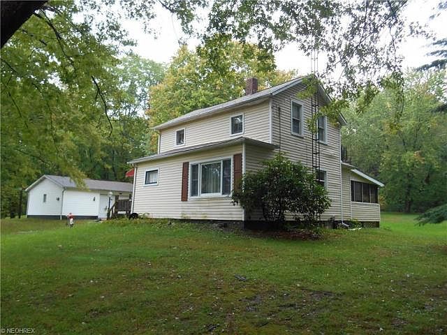 3 bedroom, 1 bathroom vinyl sided home sitting on a beautiful 1.77 acre lot. Main level has an updated kitchen with plenty of cabinet space, a formal dining room, a living room with wood pellet stove, a full bathroom with claw foot tub/shower and a 1st floor laundry room. Upstairs has 3 bedrooms. There is a large screened in back porch that overlooks the property. Other features include an over sized (24 x 32) garage with electric, a storage shed, updated electric service panel, updated forced air furnace, water softener system, some updated windows and more. With a little TLC and cosmetic updating this could be a wonderful property. Country living but only minutes away from everything.