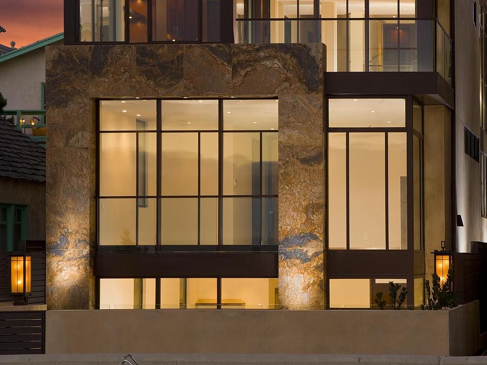 Life on The Strand, where luxury homes meet the Pacific Ocean and one of the most pristine beaches and best surf and volleyball in the entire world. This Zen-like custom built and designed Louie Tomaro home is where contemporary meets casual. Every aspect of this home surrounds you in sunlight either cascading in through the many skylights or the rays that flood each room from the wall to wall, floor to ceiling windows. Step off the sand and on to your private deck sitting right on the boardwalk where you can watch the bicyclers and joggers go by on the upper patio or relax just out of view in your private Zen inspired lower deck where you?re surrounded by earths element with the 5-foot wall fountain, travertine, ocean breezes, and in ground fire pit. Built-in wall mounted benches, an outdoor shower, and glass wind screens transform this outside deck into a comfortable outdoor living room. The exterior of the home beautifully combines glass and a rare Brazilian Magma Granite which continues extensively throughout the interior. Best priced home on The Strand!