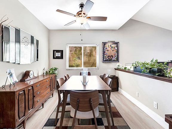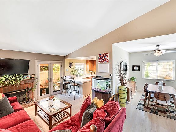 Welcome to this stunning 3-level end-unit townhouse style condo with no neighbors in the rear, perfectly designed for your enjoyment. This home features 2 spacious bedrooms and 2 bathrooms, with an attached 2-car garage offering direct access for your convenience. As you step inside, you'll be greeted by a bright living room with vaulted ceilings and an abundance of natural light. The second level boasts a formal dining space with a ceiling fan, seamlessly connected to a cozy family room with its own vaulted ceiling, a fireplace, and access to a charming back patio—ideal for outdoor dining and relaxation. The kitchen, open to the family room, is a chef's dream with stainless steel appliances and ample cabinet and counter space. The primary bedroom suite is a true retreat, featuring a walk-in closet and an ensuite bathroom with dual sinks, tile floors, and a shower. The second bedroom, currently set up as an office, offers flexibility for your needs. The guest bathroom has a tub and tile floors.The complex has a pool, tennis court, basketball area and golf. With guest parking nearby and beautifully landscaped surroundings, this home is a must-see.