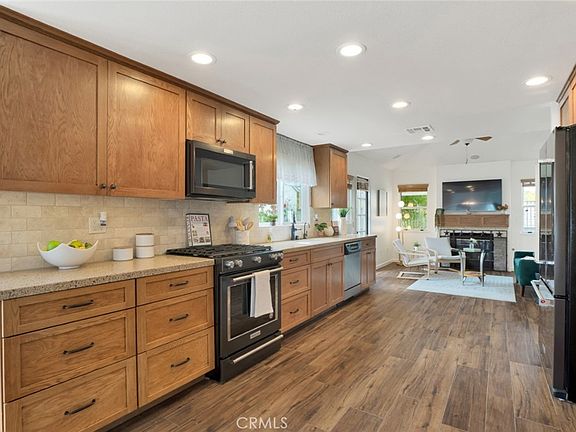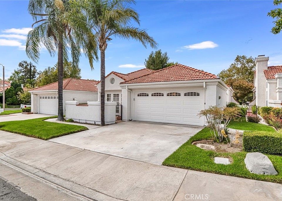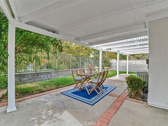 Welcome to this charming single-story home in the highly desirable San Marino tract of Valencia Summit. Set in a community known for its multiple pools, clubhouse, tennis courts, and access to paseos, trails, and CalArts University, this property combines lifestyle and location. Inside, the open floorplan features durable ceramic tile floors that mimic the warmth of hardwood. The step-down living room with double doors opens to a welcoming front patio, while the formal dining area provides the perfect space for entertaining. The remodeled kitchen shines with custom cabinetry and top-quality appliances, flowing seamlessly into the family room with its cozy fireplace and views of the backyard. The home offers three bedrooms, including a spacious primary suite with high ceilings, sitting area, walk-in closet, and private courtyard. The updated primary bath includes a custom-tiled step-in shower. Outdoors, enjoy a covered patio with pergola, a garden area, and an attached 2-car garage with direct home access. This beautifully maintained property offers comfort, convenience, low HOA fees, and the sought-after Valencia lifestyle