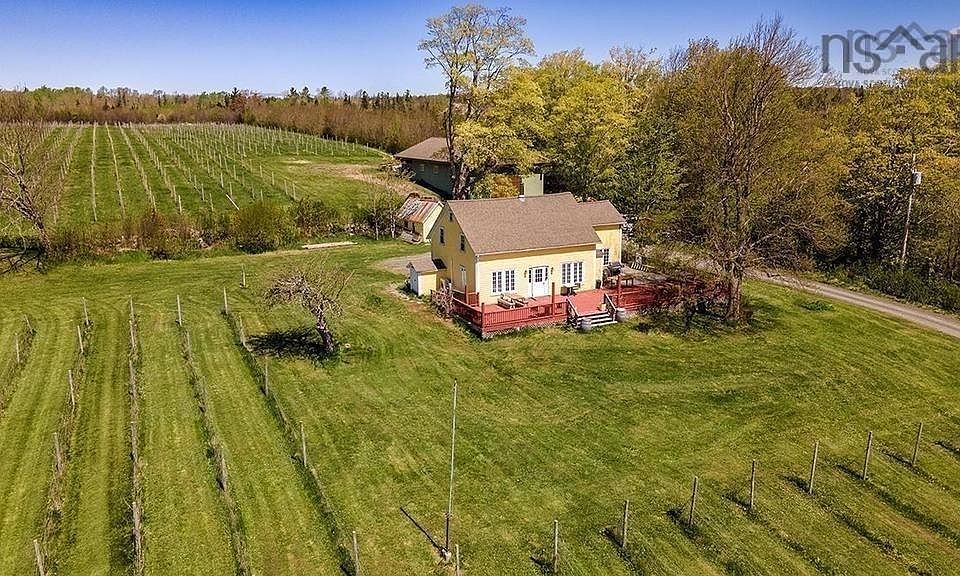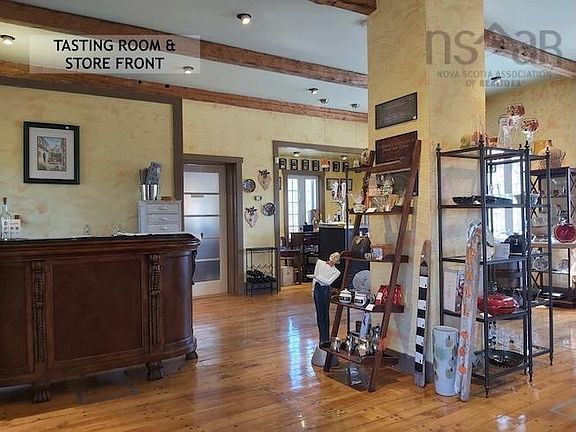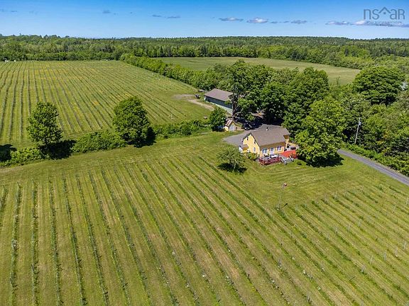 Beautiful Farm Property, ideally situated between three Historic Towns and villages including Digby, Bear River and Annapolis Royal. Only 15 to 20 minutes from the Tidal Waters of the Annapolis Basin and the Bay of Fundy! The private driveway leads you across a bridge over the Harris Brook and continues weaving up the hill to the beautifully renovated Century Farmhouse, which is perched on a bench, and has panoramic views of the valley below. The house is currently being used as an open concept Wine Shop with separate kitchen and 2 piece bathroom and is 1062.09 sq. ft. This building could be made into a residence by adding a heat source and shower/bathtub. The vineyard lands total 10 acres. Seven acres are planted with Riesling, DeChaunac, L'Acadie Blanc, Muscat and Leon Millot. The vineyard requires some interplanting and is currently being managed organically. Along the driveway is a separate 2 car garage, and across from the Farmhouse is a modern Insulated Concrete Form building which is 36' x 80' ( 3,589.60 sq. ft. ) and includes 18 foot high walls, reinforced concrete floor with floor drains, a modern septic system, a wine cellar, water, second floor mezzanine, single phase and 3 phase electricity. Currently being used as a winery production facility, this building can be used for a multitude of different business ideas. The price includes all Farming and Winemaking equipment on site. A full list of equipment is available from the Seller. Please visit the Realtor's website for more information.