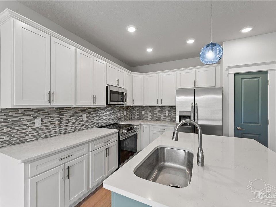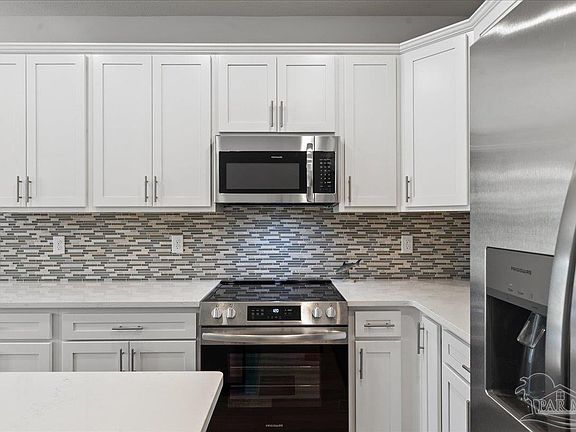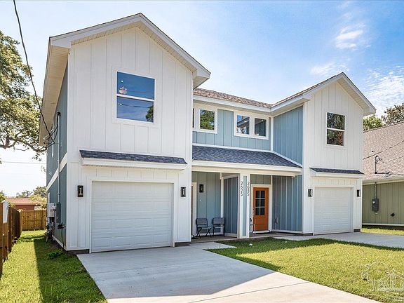 Welcome to 2635 N. 8th Ave, located in the highly desirable East Hill area of Pensacola. This exquisite townhouse features 9 ft ceilings, a custom tile shower, and backsplash in the kitchen and half bath. The home offers multiple walk-in closets, plenty of storage, and a deep garage. Enjoy outdoor living on the covered front and rear porches. The interior boasts quartz counters, ivory custom shaker-style cabinets with a Slate Blue Island, color-matched interior doors, Slate Blue vanity cabinets, and a Touchstone electric fireplace with Wi-Fi and smart compatibility. The solid red oak open stairway with a custom-stained wood banister adds a touch of elegance. Built-in cabinets in the laundry room near the primary bedroom provide convenience and organization. Living in East Hill area is highly desirable due to its prime central location. You'll find yourself perfectly situated between Pensacola's main shopping areas, diverse restaurants, and essential amenities. The proximity to Pensacola International Airport, Downtown Pensacola, and the beautiful Pensacola Beach ensures that all your travel, dining, and entertainment needs are just minutes away. East Hill is also known for its community-oriented atmosphere and the highest density of parks in Escambia County, including the stunning Bayview Park. With multiple popular East Hill restaurants and breweries just a short bike ride away, you'll have endless options for dining and socializing. Experience the best of Pensacola living with its blend of convenience, community, and vibrant lifestyle.
