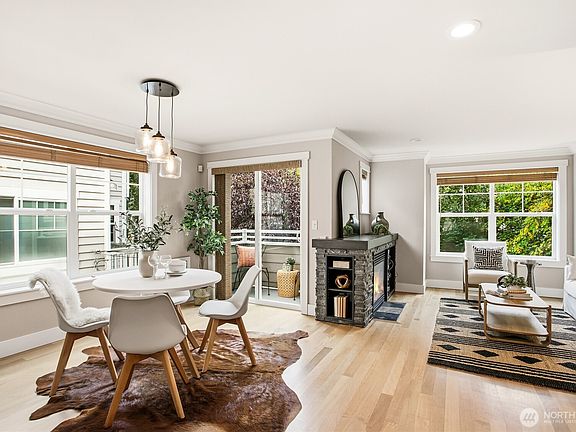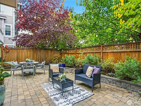 Tucked away from the buzz (yet close when you want it) this Ballard townhouse soaks up the southern light and helps you recharge. Three ensuite bedrooms and a persistent calm. The living spaces are perfect: open living/dining/kitchen: granite counters, gas range, hardwood floors + powder. Ultra cool gas fireplace & powder. Two ensuites up (w/AC) to keep you happy as can be; downstairs, another ensuite bedroom with easy flow to an oversized, fenced patio. Bistro lights set the mood: gather your people & connect; a European courtyard in the PNW. Convenient attached garage + storage. Fully inspected for convenience. Around the corner, the best eateries, shops & renowned Sunday Farmer's Market. Easy commutes. Settle in; this home will keep you.