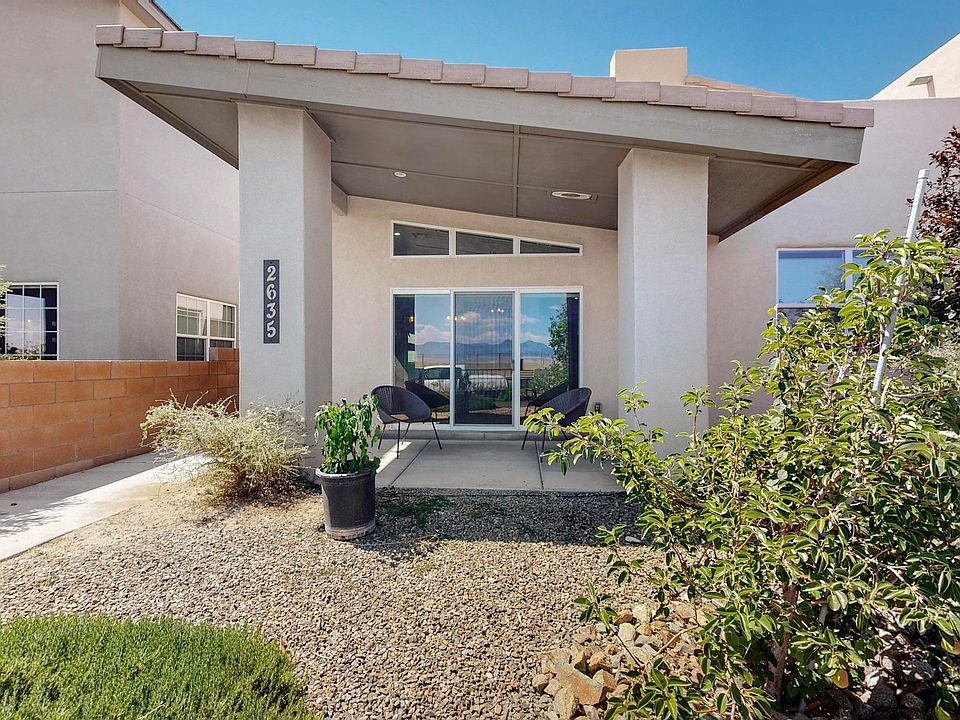 $5000 BUYER CREDIT WITH ACCEPTABLE OFFER. This property sits on the Southeast perimeter of the Mesa Del Sol community which affords owners clear views of the Manzano Mountains and space in terms of access and parking with no cross street, clustered neighbor activity. Built in 2019, this is a Westway Homes design and layout consistent with this local builder's distinctive architecture and quality fixtures and finishes. These include quartz counters, Bosch appliances, staggered high end cabinetry, a butler's pantry that leads into the large pantry, as well as a tankless water heater and first class window treatments. Mesa Del Sol is close enough to Albuquerque for reasonable commute times and far enough out for a distinctly different residential and communal feel of its own.