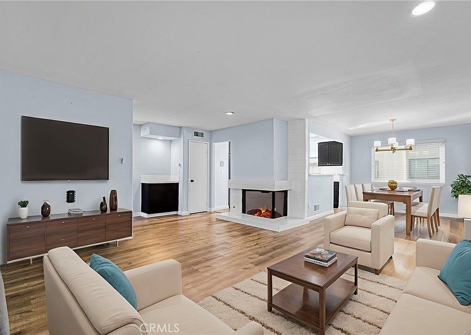 Tucked away in a prime Calabasas location, this updated tri-level townhome in Las Virgenes Village welcomes you! Looking for something light, bright, and inviting, this spacious home features three generously sized bedrooms and two-and-a-half bathrooms. The main level offers an open-concept living space with smooth ceilings, recessed lighting, laminate flooring throughout, and a cozy fireplace accented with great tile, making it a feature of the main floor but subtle, giving off a cozy vibe. The updated kitchen is a great space with Caesar stone countertops, a designer tile backsplash, stainless steel appliances, and a farmhouse sink and plenty of storage space and a good sized dining area, keeping the concept open and flowing nicely. Enjoy a quiet morning on your balcony just off the living room. Upstairs, all bedrooms are a good size with dual-pane windows and laminate flooring throughout, including a spacious primary suite with high ceilings and an en-suite bath. The additional full bathroom serves the secondary bedrooms, and there’s a convenient half bath on the main level for guests. The attached two-car garage offers direct access for ease and privacy. The community itself has great amenities, including a sparkling pool, relaxing spa, clubhouse, and beautifully maintained greenbelts and some utilities such as water, cable TV, and basic internet services, all this and more located within the award-winning Las Virgenes School District, with hiking trails, shopping, and so close to our beautiful beaches. This is Calabasas living at its best.