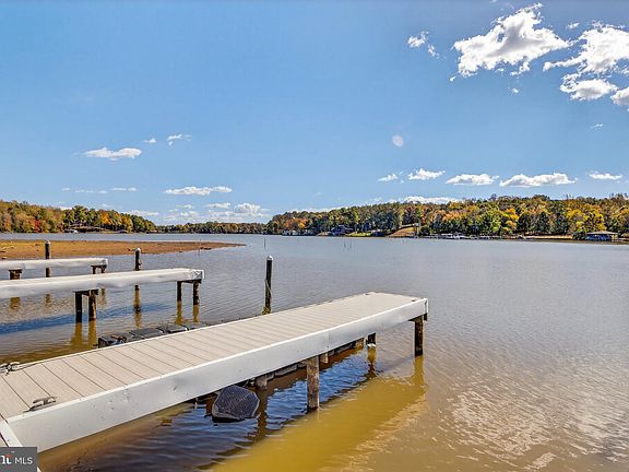 Recently constructed high-end water access home at Lake Anna, comes with private boat slip, high-speed internet, home fully furnished, and a FREE GOLF CART with purchase! Located on the expansive public side of Lake Anna - just a short boat ride from great waterfront restaurants, coffee, ice cream, and The Lake Anna Taphouse - this extremely well-maintained, single-level home offers all you'll need in a weekend lake escape. This charming lake house is designed around a large open living space, which includes a spacious living room, separate dining area, and attractive open kitchen. The tastefully-decorated living room is anchored by a beautiful fireplace framed by a custom mantle, sturdy built-in shelving and cabinetry, and features quality furniture and home decor. The integrated kitchen offers granite countertops, a large island with bar seating, endless storage, and stainless appliances. The spacious primary bedroom suite includes a big walk-in closet with custom wood shelving, an en suite bathroom with granite countertops, double vanity, separate walk-in shower with double shower heads and seats, and a wall of built-in convenient storage closets. Down the hall, your family and guests will enjoy two additional bedrooms, each with ceiling fans and spacious closets, and then another full bathroom with granite countertops, bathtub, and shower. Additionally, this home offers a separate mudroom/laundry room with custom drop zone, as well as a large screened-in porch off the back of the home. Outside, the large wraparound porch is perfect for unwinding after a long week, as is the cozy fire pit in the large backyard. The massive detached two-car garage is perfect not only for protecting your vehicles, but also a great spot to store your watercraft, water toys, or other belongings. High speed fiber internet is provided by Fiberlync. Fantastic location: short walk to your very own boat slip (#47) in the nearby neighborhood water access area; a short boat ride to waterfront restaurants, marinas, and other waterfront entertainment spots; or take a short drive to groceries, restaurants, fast food, vet clinic, ABC, and more. And best of all, you'll get a FREE GOLF CART with your purchase!