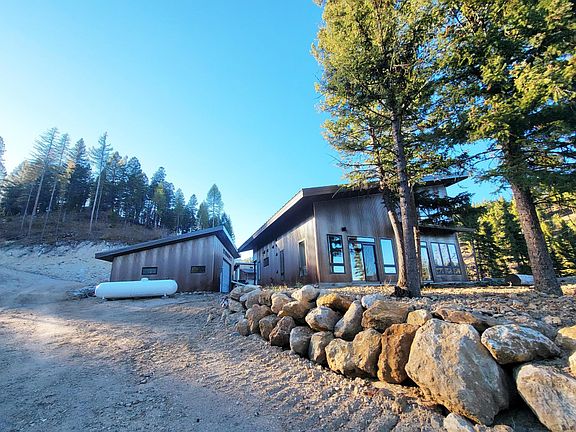 Self-sufficient living at its best. This home is located behind a locked gate in the Anna's Acres Development and sits on 49 +/- acres that borders 25,000 +/- contiguous acres of state land. This unique home hosts one bedroom an open loft and two bathrooms. There is a loft that could easily be converted into a second master suite. Beautiful wood accents throughout including a barnwood wall, built in wood table, slab wood shelves. The reclaimed lumber used for stairs, flooring and joists came from The Missoula Mercantile. HUGE windows are perfectly situated to capture sunrises, views, and nature. The cathedral ceiling provided more space for additional windows allowing in as much sunlight and view as possible. In the kitchen the sleek design of cabinetry and hidden appliances ... Surface Water: Spring run off. make the kitchen one for the ages. Extra storage space in the entry, large closet in the main floor master and the loft suite provides generous space for storage.