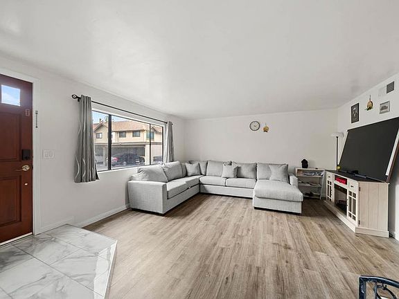 Step into comfort and style in this beautifully updated 3-bedroom, 1.5-bath townhome. The inviting living room with a fireplace creates a warm, welcoming atmosphere, while fresh paint, newer carpet, and modern flooring give the home a bright, refreshed feel. The kitchen is equipped with stainless steel appliances and conveniently located next to a full-size laundry closet. Enjoy outdoor living with a covered patio off the dining area perfect for morning coffee or evening gatherings. Upstairs, the main bedroom balcony offers peaceful views of west Alpine sunsets and cool nighttime breezes. Additional updates include new closet doors, and the home is just steps from two assigned parking spaces and the community pool. You’ll love the easy access to local dining, parks, the library, and Viejas Casino & Outlets. This home is ready for you to move in and start living your Alpine lifestyle today!