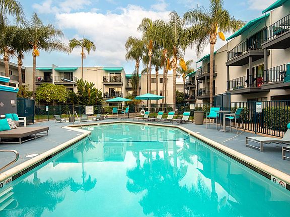 Our spacious one and two bedroom apartments each have a private patio or balcony. Residents can enjoy the tropical landscaping, a pool and spa, sundeck with BBQ, fitness center, Amazon package lockers, and a resident cafe with free coffee and snacks for purchase. Rose Creek Trail is right down the road as well as the beautiful Mission Bay Boardwalk. With so many amenities and a superb location, The Pacific at Mission Bay is the perfect place to live and play. Call today for more information.