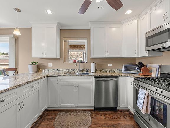 Welcome to 2636 Grove Avenue, a beautifully renovated and immaculate brick bungalow that combines classic charm with modern updates. Built in 1921, this home offers approximately 1,850 square feet of living space above grade plus a finished basement. Inside you will find four spacious bedrooms and three full bathrooms. The main level features hardwood floors, timeless woodwork, and a spacious kitchen with white cabinetry, stainless steel appliances, granite countertops, and a walk-in pantry. A first-floor bedroom and full bath provide flexible living options, while the upper level offers two large bedrooms and an additional full bath with an updated vanity and mirror. Both upstairs bedrooms are equipped with mini split AC units for added comfort. The finished basement includes a fourth bedroom, a third full bath, a large family room, updated flooring, and ample storage. Step outside to a large fenced backyard with a brick paver patio and plenty of green space, perfect for entertaining or relaxing. The two-car garage has been recently updated, and a wide parking pad adds extra convenience. Recent improvements to windows, plumbing, and electrical systems bring peace of mind. The location is highly desirable, with easy access to the Berwyn Metra station, I-55 and I-290, as well as nearby shopping and dining in downtown Berwyn and North Riverside. Parks, playgrounds, and community amenities are just minutes away, and the property is served by School Districts 100 and 201. 2636 Grove Avenue is a wonderful opportunity for anyone seeking a spacious and well-maintained home in a vibrant, well established neighborhood.