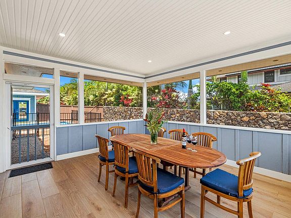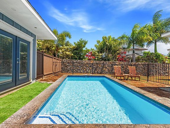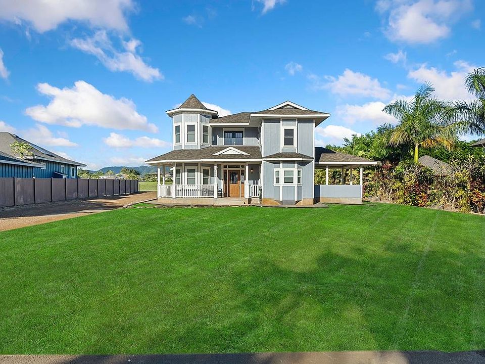 Kauai's NEWEST Vacation Rentable Home w/ POOL built in coveted Poipu Beach Estates - on the Sunny South Shore. 0.42 acres of land area with a BRAND NEW HOME - 2 Story 3 Bedrooms + Office (turret), 3 full Baths plus Guest Powder Room, with a spacious screened in Lanai, and Detached 3 car Garage. Privately owned 16 panel 5,840 Watt "Enphase" Photovoltaic Power System with battery backup. Permitted in ground tiled swimming POOL, 6' Lava Rock privacy wall, Landscaping, and a mini private orchard (Dwarf Avocado Lime, Mango, Banana & Papaya). Primary Suite is located on the ground level together with the Living room, Dining room, Gourmet Kitchen and Enclosed Lanai. At the top of the Custom Circular Staircase are two additional bedroom suites and a bonus office or meditation room. Hiding in one of the closets you will find a half door accessing the attic storage. Take your time to enjoy quality features like, Tiffany Style stained glass lamps, sconces, chandeliers and transom windows. Beveled glass Entryway refracting rainbows of color across the kitchen ceiling in the late afternoon sun. Finish Carpentry includes durable wood grain (porcelain tile) plank flooring throughout, Custom Tray ceiling in main living area, base and crown moulding, corbels, and glass door knobs. Exterior Doors have coded entry. Monthly HOA ($97.50) & Sewer ($47.00) fees are LOW - because CPR Units 1 & 2 pay half share.