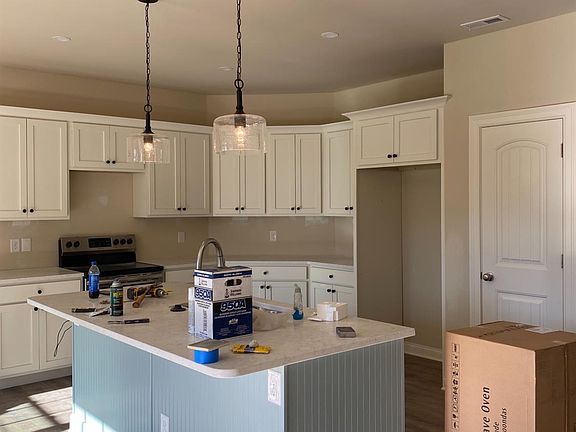 The Firethorn quality built by Commonwealth Designs in the desirable Kearney Hall Subdivision. Features of this luxurious ranch home are brick on front, upgraded vinyl siding, 9'ceilings throughout, luxury vinyl plank flooring throughout except bedrooms and baths, 36'' designer kitchen cabinets with large island, stainless appliance package, tiled backsplash,under cabinet lighting, and granite countertops. Ventless fireplace in great room. Master Bath features a large tiled shower with transom window,5' soaker tub, raised vanity with granite countertop. 2 additional bedrooms, full bath with granite countertop, formal Dining Room, great room, seperate laundry and a finished bonus room/4th bedroom complete this beautiful home.