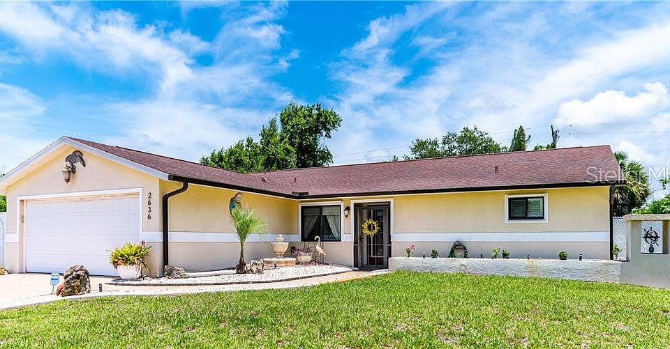 OFFICIAL LISTING AGENT - LESLIE BROWN PA (click my name on the right ==>) Come live in a boating community without the price of waterfront! This superior location has boat slips available separately one short block away and is only three miles from the beach! Relax in the large yard inside the screened lanai next to your heated pool and spa. Enjoy the privacy created by the high reaching fence enclosing your spacious backyard. The quaint storage shed will hide all of your beach toys and gardening tools. This two bedroom home as set up currently can comfortably sleep nine! This home would be a great investment as the current owners have used it as seasonal rental with great return for years! This home has had expert maintenance and the current owners even had a preliminary home inspection to ensure everything is in good working order, they are willing to share this with a serious buyer! This home offers you a dinette which is currently being used as a whimsical seating area, while there is a more room for more formal dining and breakfast bar in the updated kitchen. You and your guests can feel safe as this home is equip with hurricane shutters and newer windows. The inside laundry room is currently being used an office/study, and additional washer/dryer hookups are in the garage. This boating community is blocks from Walmart, Ann Dever nature park, the community pool, skate park, dog park, and a brand new recreation facility with easy access to shopping, world class fishing and delectable dining experiences!
