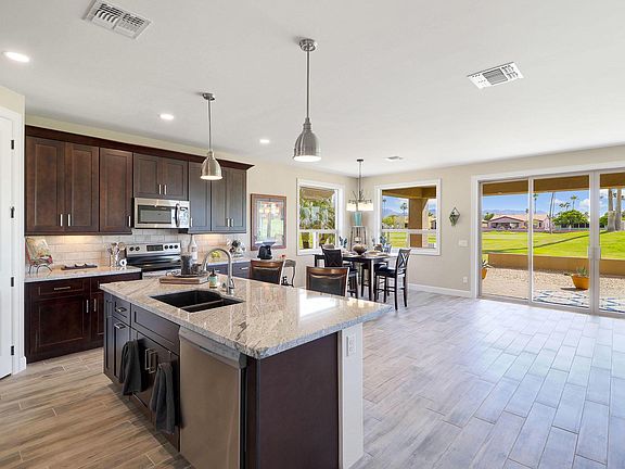 TO BE BUILT Custom home w/open concept, gorgeous gourmet kitchen/great room looks west to stunning nearly 180 degree golf course views. 1846 sq ft, 3 BR, 2.5 BA, split floor plan. Lg Master BR w/low E windows & master bath w/spacious vanity/linen closet & large tiled shower. Extended master closet w/shelving. 9 ft ceilings, gourmet kitchen w/upgraded soft close cabinets, beautiful granite counter tops, pantry, stainless appliances, tiled tub surrounds & shower enclosures, LED lighting, wood look tile floors & two tone paint are a few of the standard features. Still time for buyer to choose finishes/make minor floorplan changes. Come take a look at this lot, you will not be disappointed! Estimated completion 6 months. Pictures are of previously completed model-same floorplan.