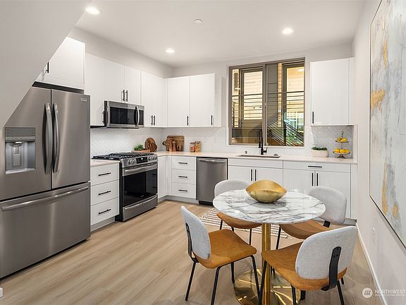 LAST HOME REMAINING in this new 5-contemporary townhome community by Modern Homes. Located in and exceptional Ballard location, just blocks to restaurants, botanical gardens. Ductless mini splits provide heat and air conditioning for energy-efficient all-season comfort. Open concept living space with stainless steel kitchen appliances and gas range. Lower level has one bedroom and a full bath. Private upstairs master suite plus bonus office space. Rooftop deck with Lake Union and Mt. Rainier views perfect for hosting BBQs. Just one block off Ballard's bustling Market street, this home is just moments from Firehouse Coffee, Portage Bay Cafe, the Ballard Locks and the year-round Ballard Farmer's Market.