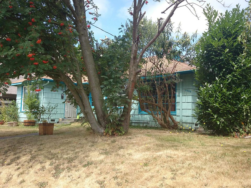 Ballard Locks area duplex. One bed. One bath. Off street parking. Rustic. - Ballard Locks Area. 2636 NW 56th St., Seattle, WA 98107. Built 1944. Side by side duplex. Off street parking. One bedroom and bath [shower-no tub.] 675 sq ft and has painted hardwood floor. Beige color [coffee with cream in it type color]. Galley kitchen. White kitchen cabinets. Simulated mauve kitchen counters. Stove. Frig. No dishwasher. Mini-blinds. Electric wall heaters. Only washer hook-up [it may not work]. No dryer hook-up. Outside storage shed attached to building. One gravel parking in alley. Small unfenced front and back yards. Two entrances. Front and back doors. Tenant responsible for lawn care.