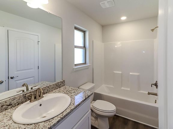 THis 4 bed 3 bath home with den is sure to please! THis is a split bedroom home. All countertops are granite and flooring is upgraded LVP with durable carpet in the bedrooms. The kitchen has a beautiful island with large breakfast area adjacent and overlooks the family room. The family room and master bedroom have ceiling fans. Other rooms are braced and wired with switches. Formal areas have bull nosed corners. Baseboards are 5 1/4 '. Appliances are stainless(Microwave, smooth top electric stove and dishwasher. There are washer/dryer hookups in laundry room. This home is 4 sided brick with a 14' x 16' covered back porch. The lot is fully sodded and professionally landscaped. Silvercrest is well lit with decorative street lamps. Shopping and dining are abundant and schools are A rated.