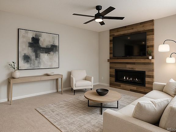 SELLER PAID 1/0 RATE BUYDOWN – SAVE APPROX. $400/MO IN YEAR ONE! CALL AGENT FOR DETAILS! Beautiful 4-bedroom home with finished basement and expansive backyard in Skyview at Crystal Valley Ranch. This move-in ready home blends comfort, flexibility, and style. It offers 4 true bedrooms upstairs, a finished garden-level basement, and a large fenced backyard perfect for relaxing or entertaining. Sunlight fills the open-concept main level through stacked corner windows, highlighting warm hardwood floors. The living area centers around a fireplace with a reclaimed wood surround. The kitchen includes a granite island, stainless appliances, gas stove, newer dishwasher, ample cabinetry, and a spacious pantry. Off the dining area, step out to your upper deck overlooking a private yard ideal for pets, play, or gardening. The upstairs primary suite features a sleek en-suite with oversized shower and a walk-in closet with custom storage. Three more bedrooms, a full bath, and a laundry room complete the upper level. The finished basement adds another full bath, storage, and a large flex space that can serve as a fifth bedroom, game room, gym, or theater. The two-car garage includes a bump-out for tools, shelving, or a second fridge. Enjoy a vibrant community with pool, clubhouse, fitness center, and nearby parks. Don’t wait. Schedule your showing today!