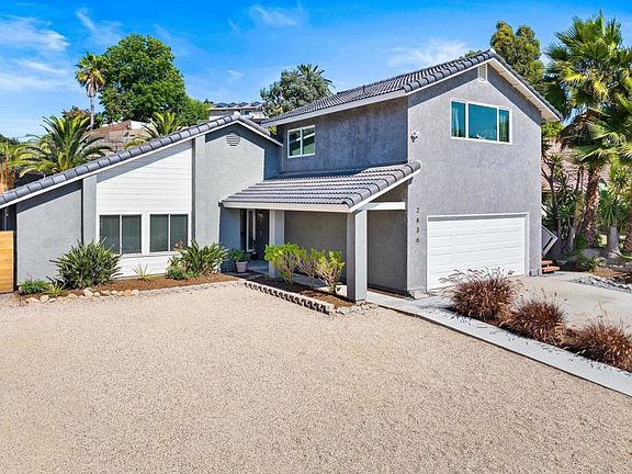 Rare opportunity to own a gorgeous turn-key 3 bedroom 2 bath pool home with 2 spectacular ADUs. So many opportunities, with open flex space allowing the main home to be a three bedroom or a four bedroom 1,977 home with two primary suites or enjoy passive income of $4500 by renting out both permitted secondary units. This unique solar-powered property in coastal Oceanside is located at the end of the street with ample parking, mature trees, gated RV parking and privacy with open space to the side. Main home features remodeled kitchen and baths, newer flooring, family room with brand new plaster fireplace, beautiful hardwood panel wall and ductless heating/cooling. Newer windows throughout, A/C and cathedral ceilings. The pool house ADU is a modern masterpiece with black trim fiberglass windows, wood siding, polished concrete details and open concept living. The ADU above the garage is highly insulated, bright and well-appointed. The kitchen features an island, quartzite counters, new appliances and plenty of counter space. Must see to appreciate.