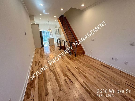Presenting 2636 Wilder St, a stunning 3-story townhome nestled in the vibrant Grays Ferry neighborhood of Philadelphia. Built in 2021, this modern residence spans over 2,000 sq ft, boasting 3 elegant bedrooms, 3 custom-designed bathrooms, a full basement, and a spectacular roof deck! The inviting ambiance and spacious open floor plan gives tenants a chance to make this house into their home. The state-of-the-art kitchen, a culinary dream, features a central island, high-end stainless appliances, soft close Shaker-style cabinetry, and solid stone counters. The bathrooms are adorned with imported tiles and rainfall showerheads. The master suite, a serene retreat, offers a generous walk-in closet and an inviting outdoor balcony. The roof deck presents a breathtaking 360-degree views of the Philadelphia skyline, perfect for entertaining or relaxing in style. This home is a true gem, do not miss out on your chance to rent this spectacular property. Schedule your tour today! All tenants of Skyline Property Management are enrolled in a mandatory Resident Benefits Package (RBP) for $9.95/month which includes the following benefits: Positive Credit Reporting- All timely rental payments made by our tenants help to boost their Credit Score! Up to $1M Identity Theft Protection Utility Concierge Service (making utility connection and home service setup a breeze!) Resident Rewards Program- Get cool prizes just for being one of our valued tenants! Benefits include these and much more, for more details click the link below: PET RESTRICTIONS: No Pets Allowed. Submit a pet application (even if you do not have a pet) at https skylinepm. SMOKING: No smoking is allowed on the premises MOVE-IN FEE: First and Security Deposit Required. $300 Non-refundable pet fee (if applicable). HOLD FEE: Minimum one-month rent and it is due within 24 hours of application being accepted APPLICATION INSTRUCTIONS (HOW TO APPLY): Ensure that you have all the required documents handy Hit Apply Now Complete the Online Application Form Pay the Application Fee Property Description Details . FLOORING: Hardwood/Carpet GARAGE/PARKING : Street Parking KITCHEN/LAUNDRY APPLIANCES: Stainless Steel Refrigerator, Built-in Microwave, Gas Range, Washer/Dryer. PROPERTY TYPE: Single Family UTILITIES: Tenants are responsible for all utilities (electricity, gas, water). Application, Lease Terms, and Fees Application Fee: Non- refundable, $65/ per applicant (over the age 18 must apply) APPLICATION TURNAROUND TIME: 2-3 business days GUARANTORS: Will be considered if criteria is met LEASE LENGTH: 12 months PROPERTY MANAGER: Skyline Property Management All information is deemed reliable but not guaranteed and is subject to change.*