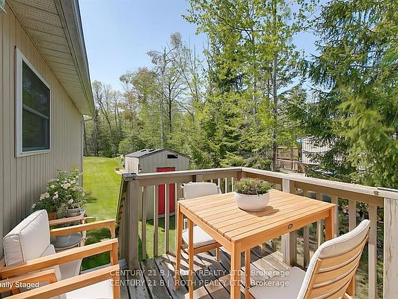 Situated on quiet private road in the heart of Alcona just minutes to the lake and all amenities this is perfect for the nature lover. Large lot backing onto forested area. Spacious bright raised bungalow with 1345 Square feet and newly finished basement boasting sprawling rec room and still room to add bedrooms and bath. Main floor laundry and the family sized kitchen along with large living room make this a great family home. Recent updates include the finished basement in 2025, new garage door 2025, Furnace and central air in 2019, Roof in 2020. The private road is accessible year round and snow removal is approx $300 per year. Home shows well with great decor!