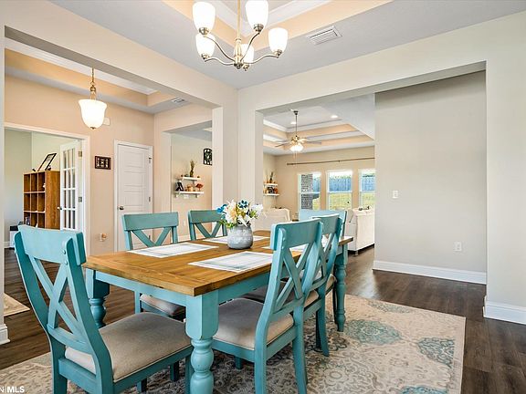 Welcome to The Reserve at Daphne! Fall in love in this beautiful resort-style community. This community has a lazy river pool, covered outdoor kitchen and clubhouse. This Avery home is an open concept and a split floor plan. This home has a 4 bedrooms and 3.5 baths, office with luxury vinyl/plank flooring through living spaces. The kitchen has granite, stainless steel appliances with gas range. This home also has a side entry garage, gold fortification roof and hurricane shutters. The fenced yard has a Gunite heated salt water pool and a 10x16 ft shop that has A/C, electricity and is insulated. Zoned for Daphne schools including the new Belforest Elementary School. Make your appointment today!