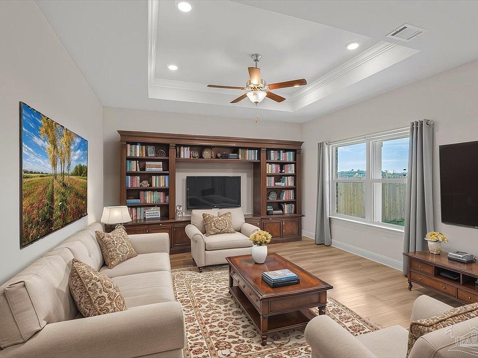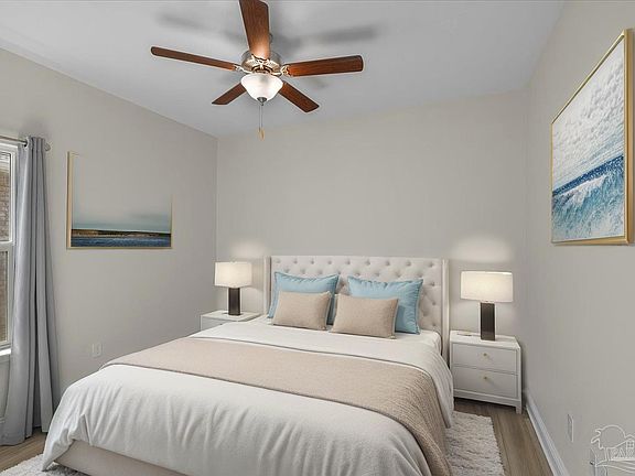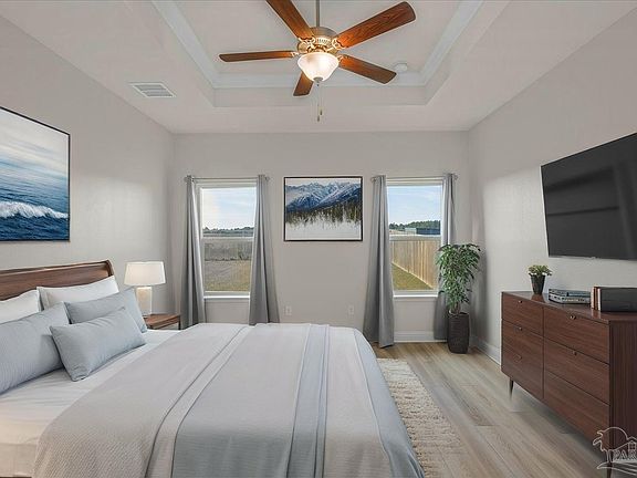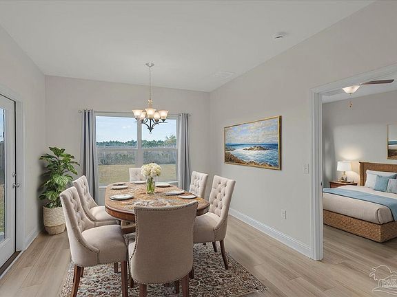 Discover the perfect blend of style, convenience, and community in the highly sought-after Bentley Oaks neighborhood, complete with sidewalks throughout, a pickleball court, and a beautiful community park. This all-brick home sits on a peaceful lot with no neighbors behind you, offering privacy and tranquility just minutes from I-10, providing an easy commute to local bases, downtown Pensacola, and the beach. Step inside the popular Juniper floor plan, a thoughtfully designed 3-bedroom, 2-bath layout that feels spacious and inviting. The open-concept kitchen is the heart of the home, featuring real birch wood shaker-style cabinets with soft-close drawers, granite countertops, a large prep island, stainless steel appliances, and a built-in microwave. The breakfast nook flows seamlessly to the covered patio, perfect for morning coffee or evening entertaining. The primary suite is a private retreat with tray ceilings, a ceiling fan, and a deluxe bathroom offering a large walk-in shower, framed mirrors, LED lighting, and a spacious walk-in closet. Durable luxury laminate flooring extends through the main living areas and bedrooms. NO CARPET IN THIS HOME. Built with quality craftsmanship, this home includes a two car garage, 30-year architectural shingles, energy-efficient double-pane vinyl windows, and storm shutter protection for peace of mind. Additional features include gutters, sprinkler system for front and back yard and completely fenced backyard. Enjoy low-maintenance living in one of the area’s most desirable communities — Bentley Oaks — where elegance, comfort, and convenience come together.