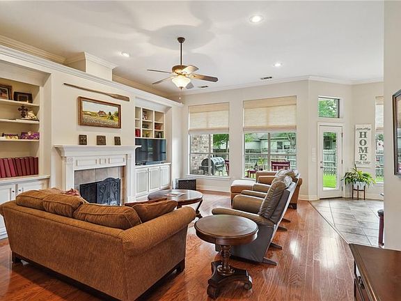 Beautiful Well Maintained 4 Bedroom 2 1/2 Bath Home, Perfectly located at the End of a Cul-de-sac in Popular Forest Brook Subdivision! This home has a Split Floor Plan with the Primary Suite on one side of the house Separate from the other Bedrooms. Wood Floors in the Formal Dining, Den and Halls. Tile Floors in Kitchen, Breakfast Area and All Bathrooms. The Roof is only 5 years old and the Trane HVAC System was installed in 2019. The Kitchen has 42" Tall Cabinets, a Gas Stove, Granite Countertops and Stainless Steel Appliances. The Family room has a Gas Start Fireplace, Built in Bookshelves and a Wall of Windows that Overlook the Covered Patio and Fenced Yard. The Primary Suite has a Tray Ceiling and the Primary Bath has a Large Corner Jetted Tub, a Separate Shower, Double Vanities and a Custom Primary Closet. The Yard extends past the small fenced in Dog Yard and Includes a Storage Shed.