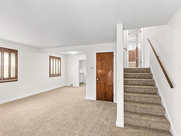 Sitting tucked away on a quiet street in West Mifflin, this home has a lot to offer! Large covered front porch with awning would make the perfect spot to relax, or sit on the side porch looking over the backyard. First floor includes living room, kitchen, and den/dining area. Built in cabinets in the den area provide additional storage and a cute accent. Primary bedroom offers THREE closets. The other two bedrooms each have deep closets as well. More storage space in the main floor closet and in the basement. Brand new carpet throughout and LVT in kitchen and bathroom. Super clean home that's move in ready!