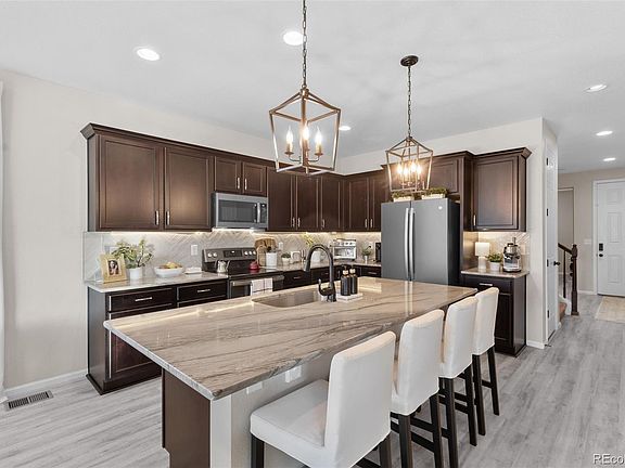 Situated on a quiet cul-de-sac in a well-kept neighborhood, this spacious home sits on a larger lot and is filled with thoughtful upgrades inside and out. The south-facing front helps snow and ice melt quickly in winter, while the landscaped backyard features artificial turf, a custom putting green, mature foliage, landscape rock, and a fully lighted covered porch that creates a seamless indoor-outdoor connection. Inside, the upgraded kitchen showcases quartz countertops, premium slate appliances, and natural light pours in through 12-foot sliding glass doors at the rear of the home. A dedicated main floor office provides a quiet space to work from home, while a front bedroom is ideal for a den or guest space, and the upstairs loft offers a great second living area. The primary suite includes a huge walk-in closet, and the laundry room is finished with cabinets, a countertop, and a clothes rod for added functionality. Storage is abundant with extra shelving in the hallway pantry closet, built-ins under the stairs, and a crawl space with ladder access that spans the full footprint of the home. The fully insulated garage features built-in shelving, a full-size refrigerator and freezer, and a water spigot for winter car washing. Additional features include an entry storm door, ceiling fans throughout the home, and an attic fan for energy-efficient airflow. Just a short distance from the community center and pool, this home combines comfort, upgrades, and convenience in a desirable location. Ask about the 1-0 Buydown. Enjoy a lower interest rate and reduced monthly payments during your first year courtesy of Bay Equity.