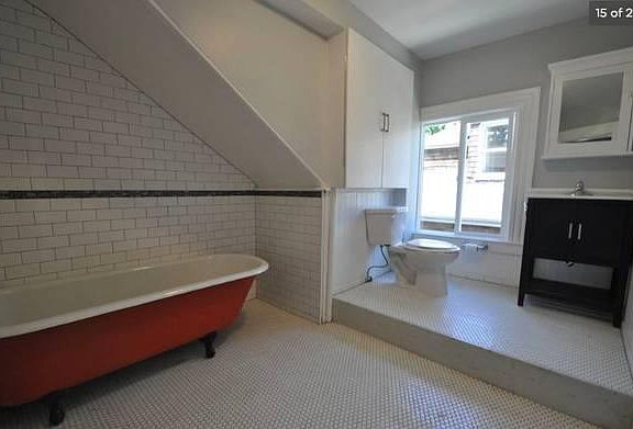 For rent is a beautiful 1BR/1 BA 700 sq. ft. apartment on the top floor of a 3 unit building. This unit is the entire top floor, is bright, spacious, and located on a prime Berkeley street. Just blocks away from UC Berkeley, and a few doors away from Willard Park, this home is close to everything Elmwood offers. This unit just underwent a complete remodel that is full of designer finishes. The kitchen has all brand- new appliances, dishwasher, disposal, dual-fridge/freezers, and a gas stove. There?s plenty of cabinet storage, plus a walk-in pantry for everything else. Enjoy nice views of the Berkeley Hills from the eat-in breakfast bar in the kitchen. Marble counters, subway tile backsplash and hardwood floors throughout the entire apartment make this unit absolutely charming. The bathroom was re-done with all period correct finishes, clawfoot tub/shower combo, plus lots of storage. The bedroom is large with plenty of space for a king bed, and has a great sized jr. walk-in closet. There is a large living room with a cozy little office/reading nook area. Most everything else was replaced, with all new double paned windows, nice lighting, new electrical, and plumbing. The heating is a central gas heater, and there is free laundry on-site. There is also a sunny backyard shared with the other tenants, but is there for your enjoyment. Parking is possible, but may require an additional fee. Most pets are welcome, but are $50/month extra and require an extra $1000 deposit. Max 2 people for this unit. Please note this is on the 3rd story so must be ok with stairs. Students are welcome, and may require a cosigner is all. Available: Late January