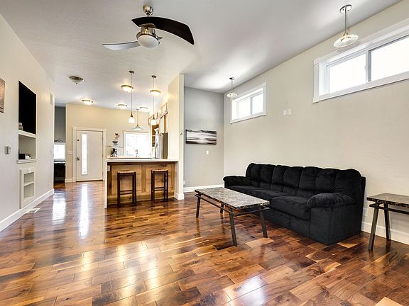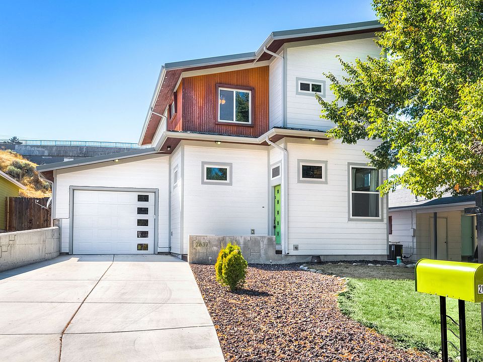 This beautiful modem homes is filled with innovative built-ins, unique windows and several spaces for storage. Dark wood floors are throughout the living space as well as several upgrades. The kitchen includes stainless steel appliances, slab counter tops and a large island that is perfect for entertaining guests.