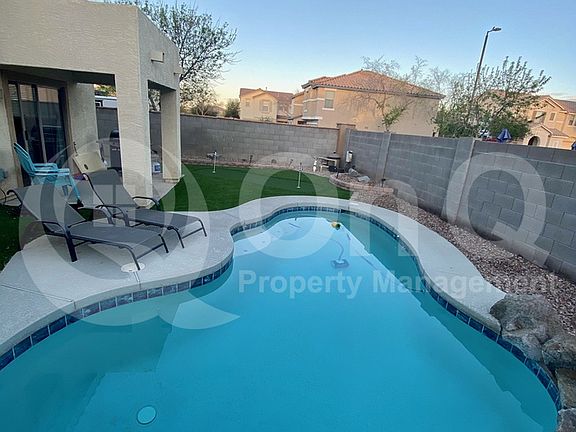 Great 2-story home in Villages at Spectrum neighborhood in Gilbert. Kitchen features cherry wood cabinets, crown molding, and a large pantry. Home has tile flooring throughout downstairs. Walk-in closets in both bedrooms and his&her closet in the master bedroom. Amazing backyard with a putting green, fire pit, and a sparkling pool with a rock waterfall feature makes this backyard the perfect spot for entertaining. Rent includes pool service. Home also includes washer&dryer. The community has many amenities including green belts, parks, play areas, tennis/volleyball/basketball courts. Conveniently located minutes from San Tan Village, Mercy Gilbert Medical Center, Chandler-Gilbert Community College, loop 202 freeway, and the Chandler airport. You don't want to miss out on a chance to call this home!